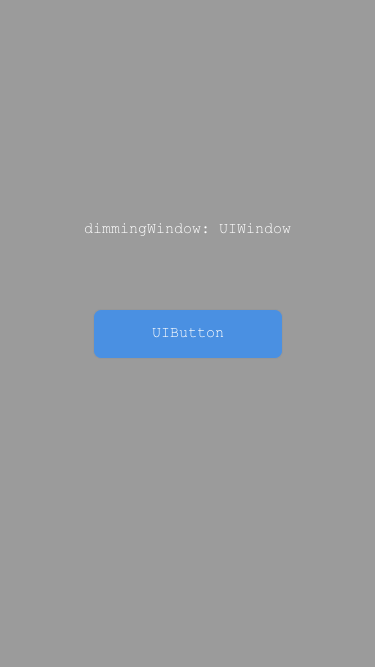 | - (UIWindow *)dimmingWindow { if (!_dimmingWindow) { _dimmingWindow = [[UIWindow alloc] initWithFrame: [UIApplication sharedApplication].keyWindow.frame]; _dimmingWindow.backgroundColor = [UIColor colorWithWhite:0 alpha:0.2]; UIGestureRecognizer *gesture = [[UITapGestureRecognizer alloc] initWithTarget:self action:@selector(dimmingWindowTapped:)]; gesture.delegate = self; [_dimmingWindow addGestureRecognizer:gesture]; } return _dimmingWindow; }