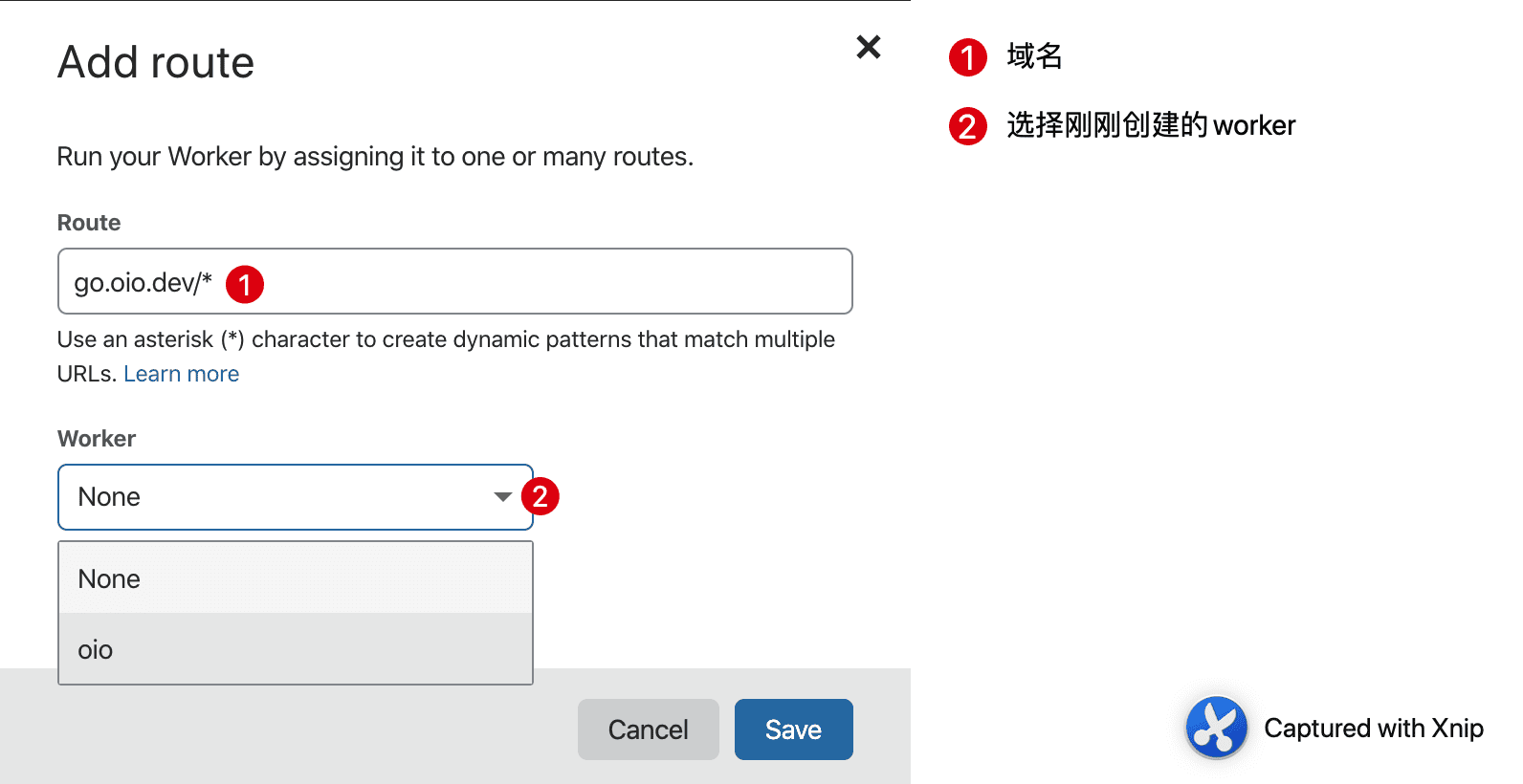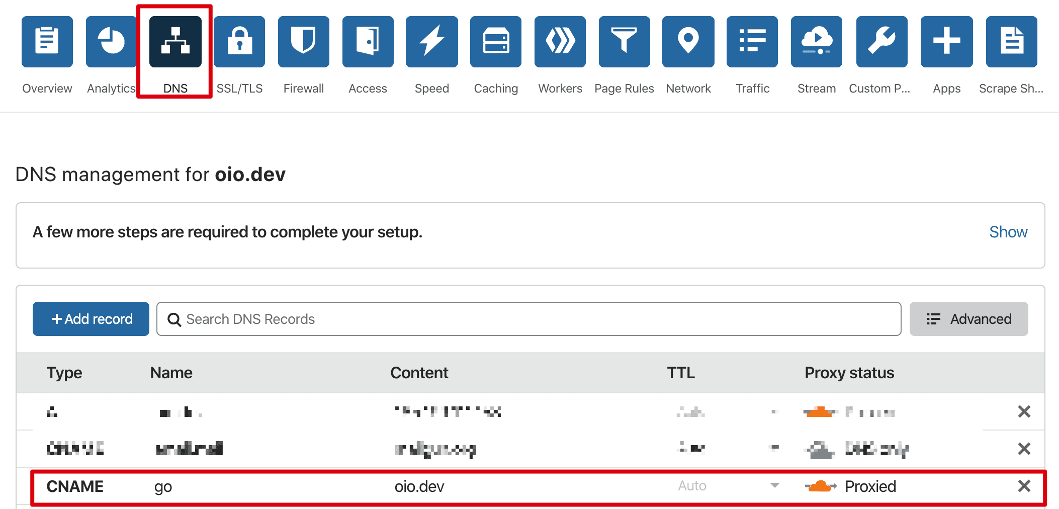 需要注意的是,如果是二级域名,需要先给这个二级域名添加一个CNAME记录,否则跳转会有问题。CNAME记录的内容理论上可以随便写,Worker会在CNAME之前拦截请求,只有未被拦截的才会走CNAME里的地址。